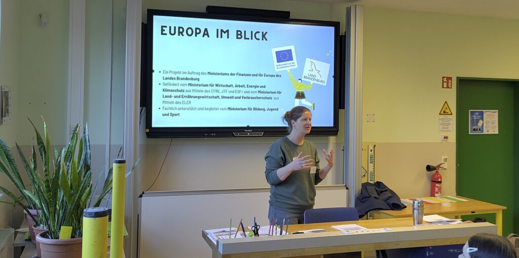 Wir sind in diesem Schuljahr wieder viel in Brandenburg unterwegs. Im Rahmen von „Europa im Blick“ beschäftigen wir uns an weiterführenden Schulen mit der EU und der Frage, welche Rolle EU Förderung in Brandenburg spielt und wie die Regionen vor Ort vom EFRE, ELER, ESF+ und JTF profitieren. Mit konkreten Beispielen und interaktiven Übungen machen wir das Thema EU so greifbar.