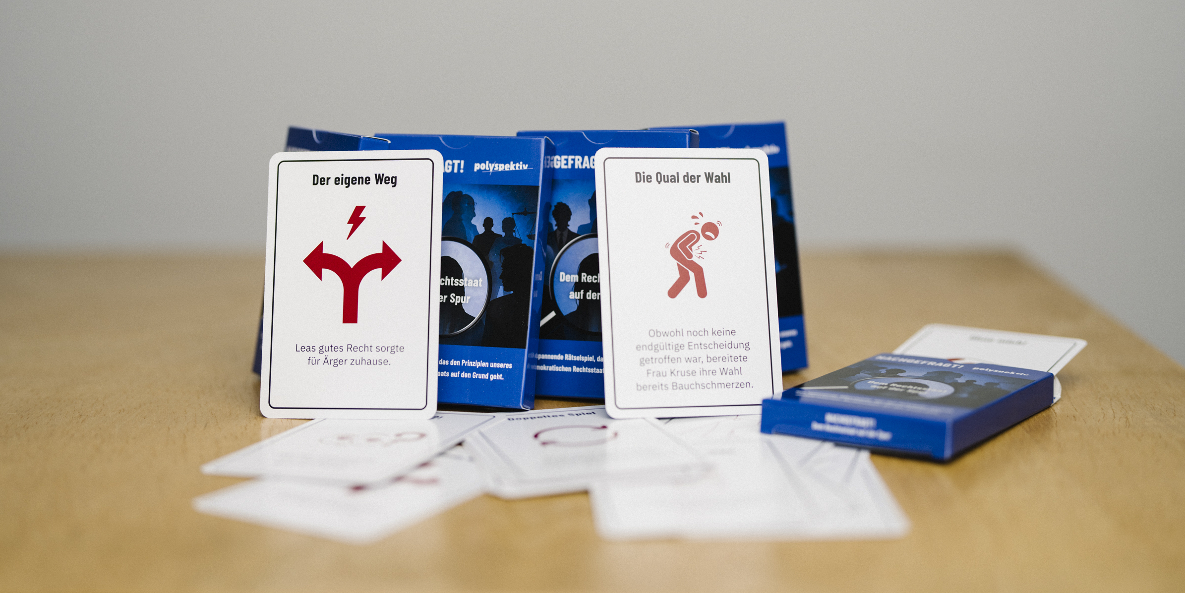 30Zwei neue Spiele rund um das Thema Demokratie haben wir entwickelt. Bei „Nachgefragt – dem Rechtsstaat auf der Spur“ nehmen die Teilnehmenden nach Art der Black Stories die Grundsätze unseres Rechtsstaates unter die Lupe. Im „Staatsquartett“ sammeln die Spielenden nicht nur Karten zu Institutionen und Prinzipien unserer Verfassung, sondern müssen diese verstehen und einordnen, um zu gewinnen. In Nordrhein-Westfalen vergibt der dortige Landtag die beiden Spiele in einer Landesversion an Schulen. Alle anderen können die Spiele direkt bei polyspektiv kaufen. Dafür gern einfach eine Mail an schreiben