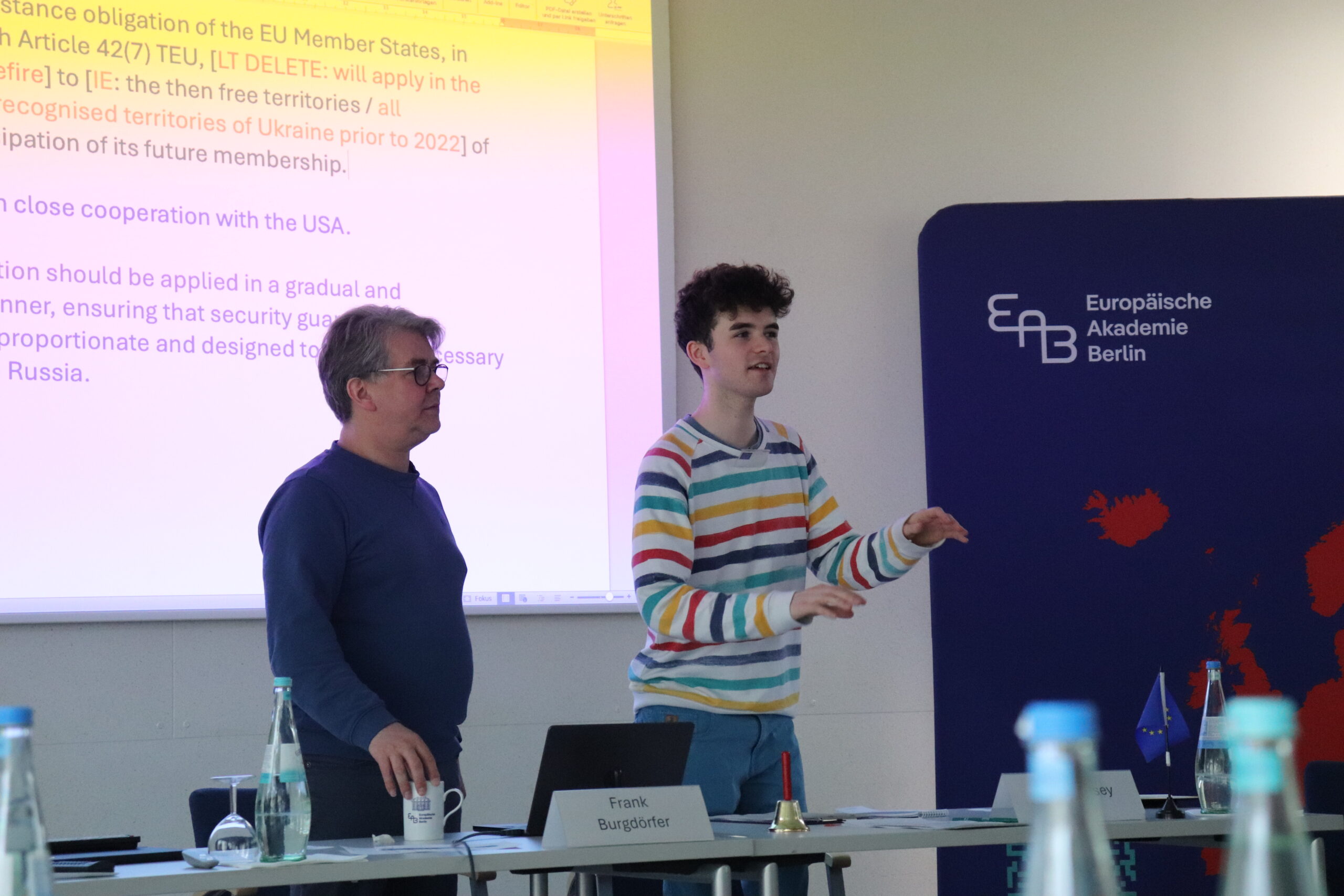 Wir haben einen Tag lang Verhandlungen im Rat der Außenminister:innen simuliert. Auf der Tagesordnung: Sicherheitsgarantien für die Ukraine beim künftigen Abschluss eines Waffenstillstandes Aufeinander trafen die unterschiedliche Perspektiven: Die Furcht vor russischer Aggression oder Vergeltungsmaßnahmen, die Hoffnung auf künftig wieder bessere transatlantische Beziehungen, das Einstehen für die EU als Friedensprojekt.