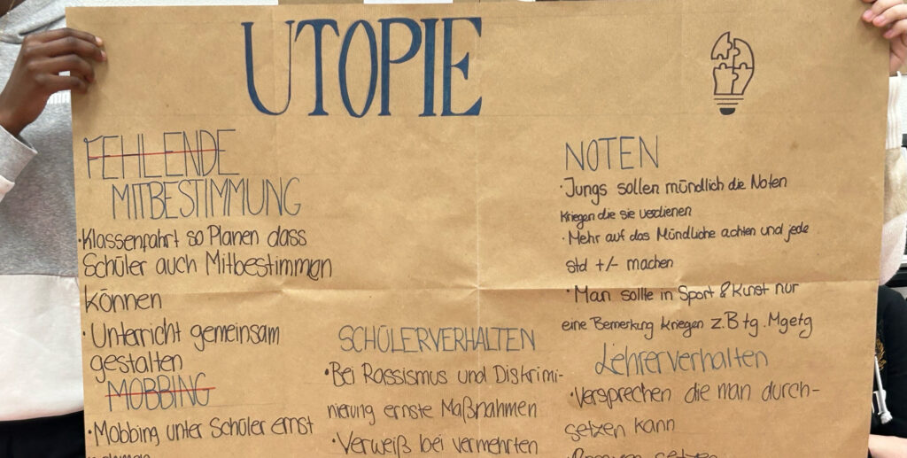 Das Projekt Demokratie. Machen! im Auftrag der Stiftung Polytechnische Gesellschaft ist 2026 ins zweite Jahr gegangen. Wieder leitet polyspektiv jeweils zwei Workshops an sechs Real- und Berufsschulen in Frankfurt am Main. Beim ersten Workshop sprechen die Schüler:innen darüber, was Demokratie für sie bedeutet, reflektieren den Umgang mit Informationen und üben demokratische Diskussion und Konfliktbearbeitung. Im zweiten Workshop widmen sie sich in einer Zukunftswerkstatt Dingen, die sie an ihrer Schule verändern und für die sich sich engagieren möchten oder vertiefen politische Themen, die ihnen als junge Menschen besonders am Herzen liegen. Vier Schulen haben ihre Workshops in diesem Jahr bereits abgeschlossen. Wir haben uns sehr über die Neugier, die Begeisterungsfähigkeit und das Vertrauen gefreut, die uns die Schüler:innen entgegenbringen, und schätzen die Intensität und das soziale Miteinander, das sie bei den Workshops bewiesen haben..